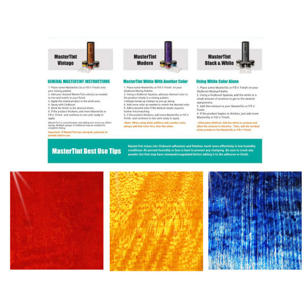 Formulato per lavorare con tutti i prodotti Cianoacrilati GluBoost® MasterGlu™ e Fill n’ Finish™