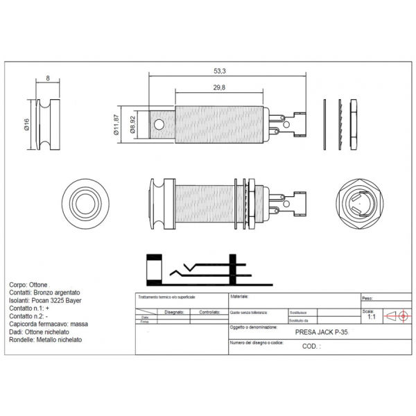 Contatti realizzati in materiale speciale che garantisce una eccezionale elasticità e durata